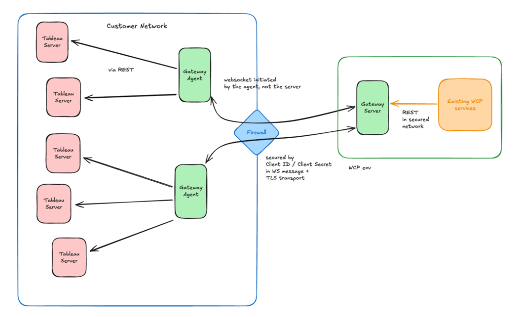 This document describes how the Gateway Client for Wiiisdom Cloud Platform (WCP) integrates with the customer's private network and Tableau Server. It explains the architecture, communication protocol, and key technical considerations for deployment and operation.
