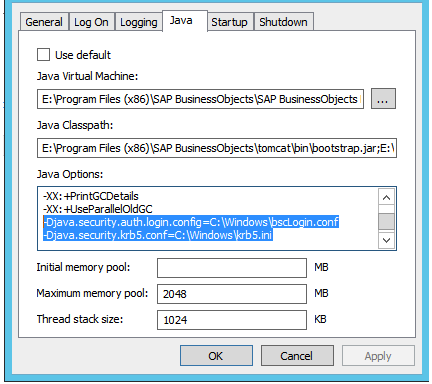 -Djava.security.auth.login.config=C:\Windows\bscLogin.conf